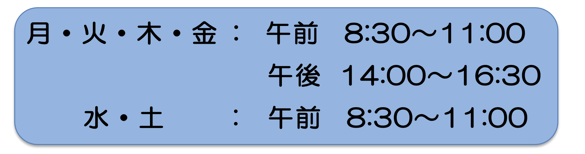 ※混雑状態によっては受付後1~2時間程度お待ちいただく事が予想されます